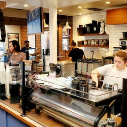 Cool little coffee shop in downtown El Segundo. It was pretty packed when I went, but the service was friendly and quick. I got an iced latte with oat milk - nothing special aka not bad but not delicious either. I got a gluten free pumpkin bread. The texture is pretty good considering it's gluten free but there's not much flavor. Something that I really didn't appreciate was that the screen that shows your total before adding tip is NOT accurate. It's the subtotal - so I ended up getting taxed on my tip. That's pretty sneaky! Street parking is pretty easy since there's free 2 hour parking along the whole street. The ambiance is cool but a bit hectic. Lots of people having coffee and working so it seems like a good place to study or get work done.